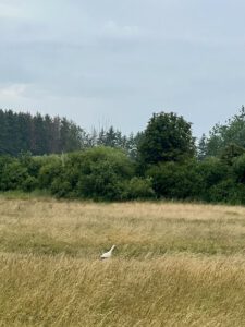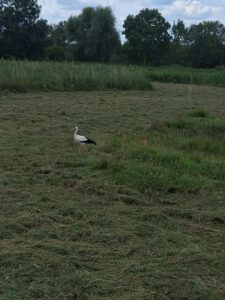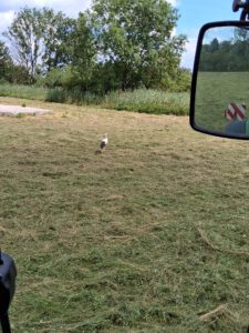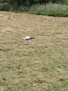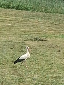 Die Wiesen rund um das Ismaninger BR gelände sind voller Leben. Ein Storch sucht nach der Grasmaht völlig unbeeindruckt vom Traktor nach Fröschen oder anderen fressbaren Tieren.