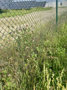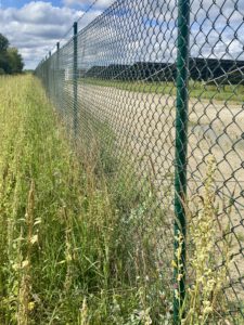 Die ganze Anlage am Zengermoos ist bereits komplett eingezäunt. Und sofort wuchert die Natur unten am Zaun entlang. Keinerlei Durchschlupfmöglichkeit für Tiere.