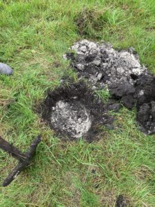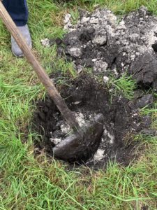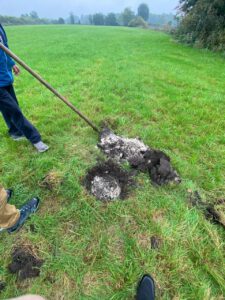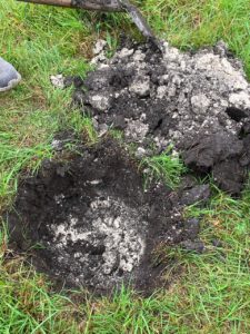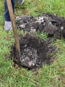 Am 10.September waren wir im Moos am Areal Nord West, um dort ein Bodenprofil anzulegen. Mit Hilfe einer Schaufel haben wir die obere Bodenschicht abgetragen. Die ersten 10 cm war nur schwarzer guter Humus zu sehen. Nach wenigen weiteren Schaufelsticken kam feinster körniger weißer Almboden zu Tage. Diese hochwertige Almschicht geht dort mehrere Meter tief in den Untergrund. Man nennt diesen Boden auch weißes Gold von Ismaning.