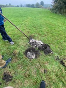 Mittlerweile hat ein anderes Mitglied dieser Tour mit einem Spaten ein Bodenprofil angelegt. Nach nur wenigen Stichen mit dem Spaten kam allerbester Almboden zum Vorschein.