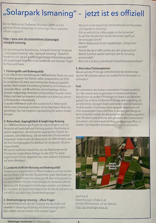 Rundschau vom 27.02.2026 „Solarpark Ismaning“ – jetzt ist es offiziell